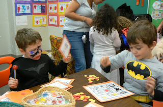We had tons of fun Halloween weekend this year!! We had parties at school on Friday, some friends over Saturday night, and then, Trick or Treating 2 different times on Sunday!! It was fun-filled!! In Mississippi, we were always told to wear costumes that were not too scary and kid friendly. They obviously do not go by those rules here in Vancouver :). On Friday, at school, all of the kids could dress up in whatever costume they wanted. They had a "haunted hallway" that Emma's class was a part of (she was dressed as a black cat, that's about as scary as we get in our household :). I went with Ty's class to the "haunted hallway" and it was SCARY!!! The teacher in charge of the hallway asked our teacher if we wanted the lights on or off, she said she didn't care, but looking back I think we should have gone with ON!! It was pitch black with a strobe light blinking, scary music, the kids were lining the hallway with scary masks and things were hanging down from the ceiling. 2 of the scariest masks were the scream face masks that had blood pumping through them--YUCK!! I had about 5 kindergarteners huddled around me crying and screaming as I am holding their hands and pushing them through. At the end of the hallway was a "dead" body hanging from the ceiling. By this point all of the kids are crying and saying they never want to do that again, and one of the little boys got a nose bleed from the excitement--TOTALLY different than the Fall Festivals we are used to attending :). At the end of the day though, both classes had great parties that were alot of fun. Emma's class decorated cupcakes, and Ty's class had several stations set up to make crafts, play games, and they sang songs for us at the end. Saturday night we had friends over and just grilled out, which was very fun and relaxing. On Sunday we went over to an area of town called Yaletown and trick or treated the shops there. It was a totally different experience, and the kids loved going from store to store. After a couple hours there, we headed home, warmed up, grabbed a quick snack, then set back out to the West End, which is where our school is located. There we trick or treated some homes and apartment buildings. People go way out here for Halloween. There was a row of houses and an apt building that had really decorated. The apt. building was made into a freak show/circus theme, and one of the houses had been made into a pirate ship. In all, inspite of the one scary event, we had a great time with friends this Halloween!